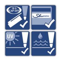 Cap off : can be left uncapped for 18 hours without drying up (Test ISO 554).