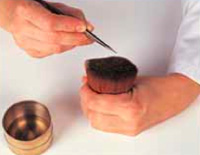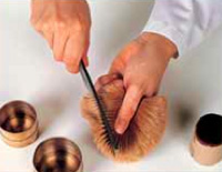11. Inserting of handle into ferrule, imprinting and crimping.