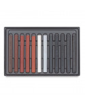 The Conté à Paris Sketching crayons include various highly reputed Sanguine colours, Grey and Bistre, grades of white and black complete the range. These crayons are very soft to apply and manufactured using natural pigments (iron oxides, carbon black, titanium dioxide), clay (kaolin) and a binder (cellulose ether). Very soft when they are applied, carrés are produced from natural pigments. Then, they are cooked after extrusion and drying. Degree of cooking permits a grade variation (from H to B) of the black and white Carrés.