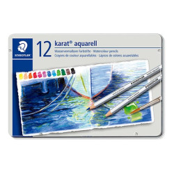 Metal tin of 12 STAEDTLER Karat Aquarell 125 watercolor pencils. High-quality colored pencil in classic hexagonal shape with watercolor lead. Soft lead for amazing bright effects on watercolor paper with water and paintbrush. Also suitable for dry techniques in bright colors. Excellent blending...