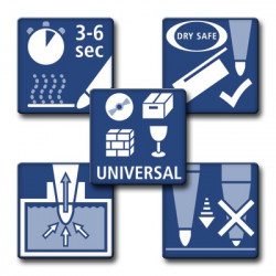 Dry safe : peut rester ouvert plusieurs jours sans sécher (Test ISO 554).