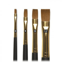 Constitués de poils en taklon doré de différents diamètres, les pinceaux Beste ont un important pouvoir d'absorption et offrent une grande nervosité. Design intéressant.