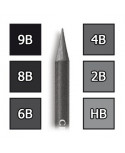 - Disponible en six graduations : HB, 2B, 4B, 6B, 8B, 9B.