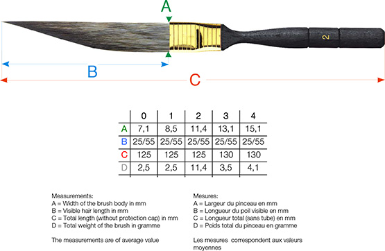 PINCEAUX POUR « PINSTRIPING » EN FIBRES SYNTHETIQUES (IMITATION PETIT GRIS) : Stryper - Série 703 : Stryper / Striper. Imitation petit gris (synthétiques). Virole en laiton. Manche noir extra court. Tailles n°0 et n°1. Technique : pinstriping à lettre....