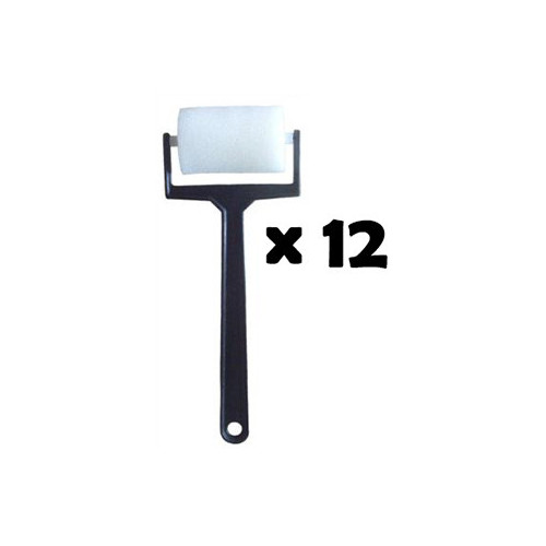 Lot de 12 rouleaux à peindre en mousse avec manche plastique. Ils s’avèrent indispensables pour les loisirs créatifs et les activités des enfants. Diamètre 3,5cm. Largeur 5,5cm. Longueur du manche 13,5cm.