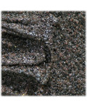 Sèche en une surface transparente, granulée noire et brune, aux reflets brillants.
