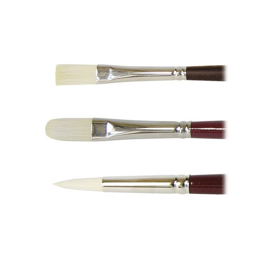 Pinceau professionnel pour huile / acrylique. Fabriqué avec une nouvelle forme de soie synthétique. Poils artificiels avec cime très fine. Longévité plus grande que les soies naturelles. Haute élasticité, ne s'use pas rapidement.