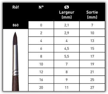 - Ronde (9 tailles) : pour les formes, contours, détails, finitions.