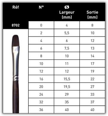 - Usée bombée (12 tailles) : pour l'exécution, les modelés, les reprises, les glacis.