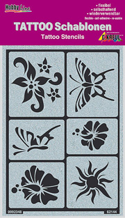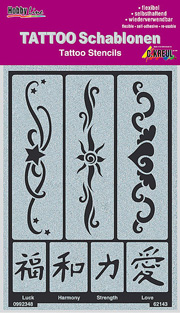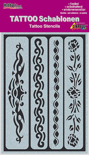 Pochoirs Tatouage - Modèles. Très simples à utiliser : Coller - Recouvrir de peinture - Décoller. Peuvent être utilisés plusieurs fois, si on fait attention lors de l'application... 62140 Rubans (1) 62141...