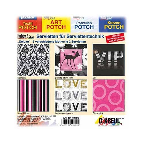 C.KREUL - Set de 12 Serviettes - 'Deluxe' - 6 Motifs (2 de Chaque)
